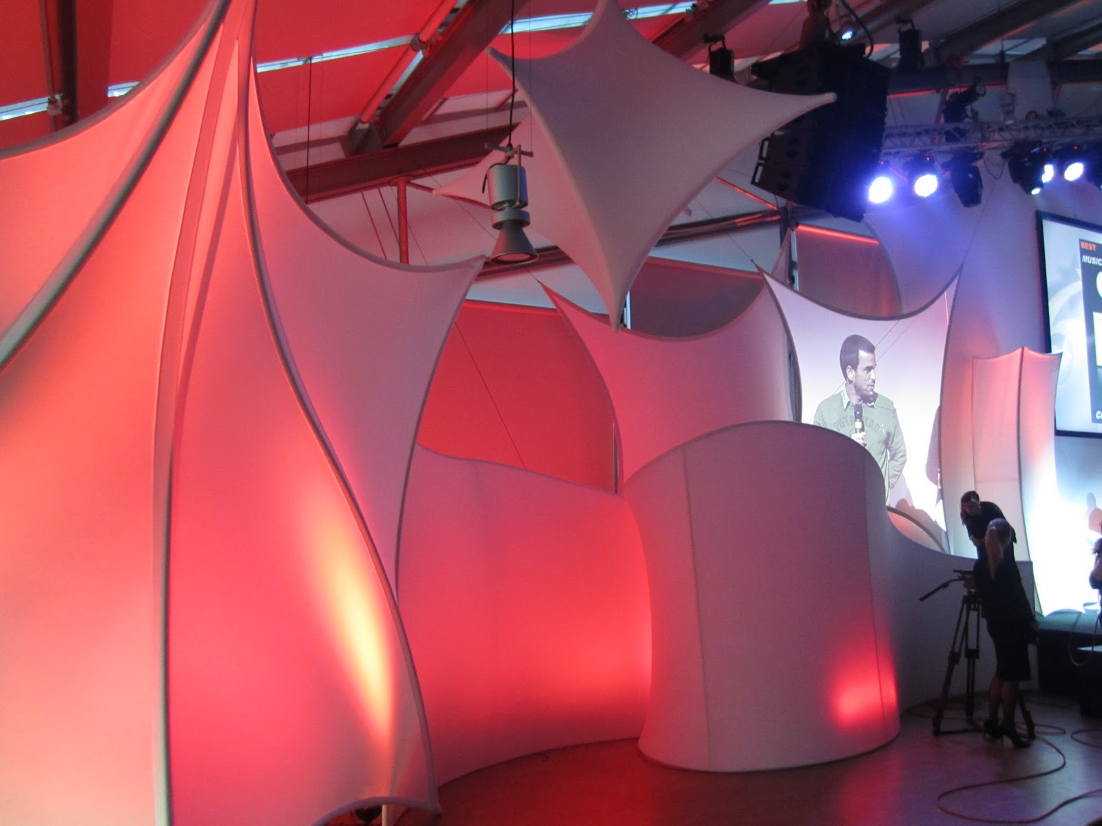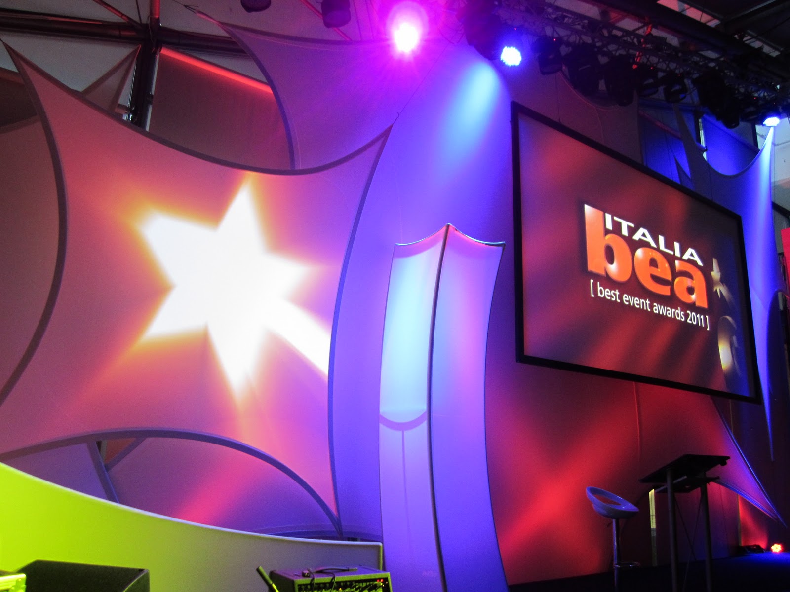 Magrada Proyectos, seleccionado como proveedor para realizar la escenografía de los premios internacionales EUROPEAN BEA AWARDS 2011 en Milán, creó un espectacular escenario con combinaciones de estructuras de tela tensada Transformit.
