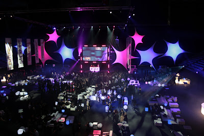 Para la cena de clausura, en el Palau Sant Jordi, la agencia italiana INPUT confió en Magrada Proyectos y sus telas tensadas TRANSFORMIT para la decoración de la Zona Party.