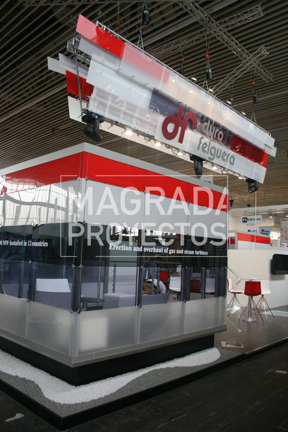Magrada Proyectos, en esta ocasión, tuvo la oportunidad de ser la encargada de realizar la propuesta, diseño, montaje, producción y logística del stand de la conocida empresa Duro Felguera; grupo empresarial especializado en la ejecución de proyectos «llave en mano» para los sectores energético e industrial, así como en la prestación de servicios especializados para la industria y la fabricación de bienes de equipo.